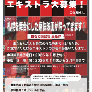 >ロケ情報を公開したのは、エキストラ募集の情報を紹介するサイト「東京エキストラNOTES」だ。同サイトで公開されたエキストラ募集のフライヤーには、《道産子のみなさんお待たせしました!札幌を舞台にした痛快映画が帰ってきます!》と書かれている。