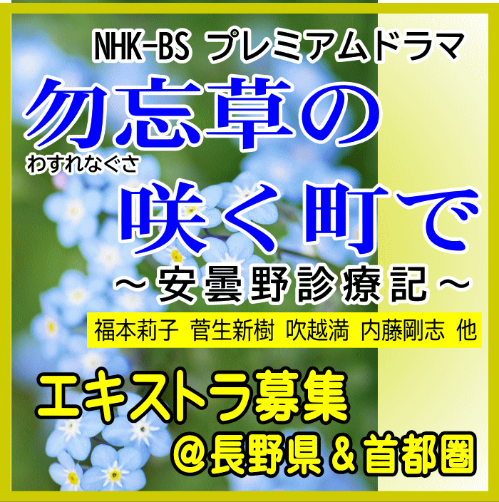 「合同会社アネットワーク」のご依頼により、6月下旬から8週にわたって放送予定のNHK-BSドラマのエキストラ募集情報をお知らせします。
