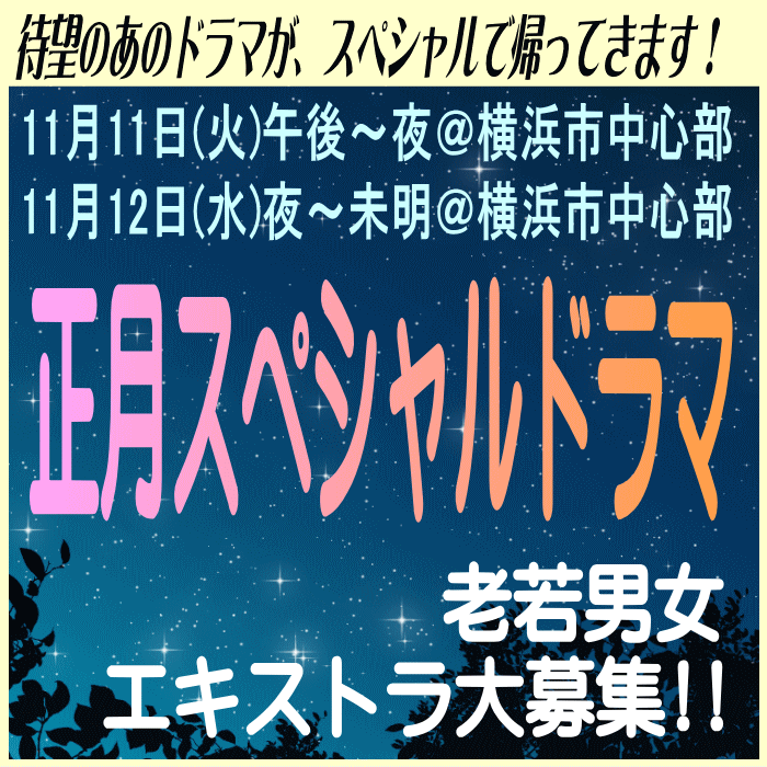 待望のあのドラマがスペシャルで帰ってきます!老若男女、大募集!!