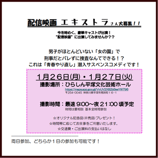 神奈川県平塚市のホームページを通じて、下記エキストラ募集情報が告知されています。