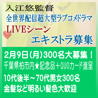 ご依頼により、入江悠監督が新たにてがける「Netflix新作ドラマ」(なんと"ラブコメ")のエキストラ募集情報をお知らせします。