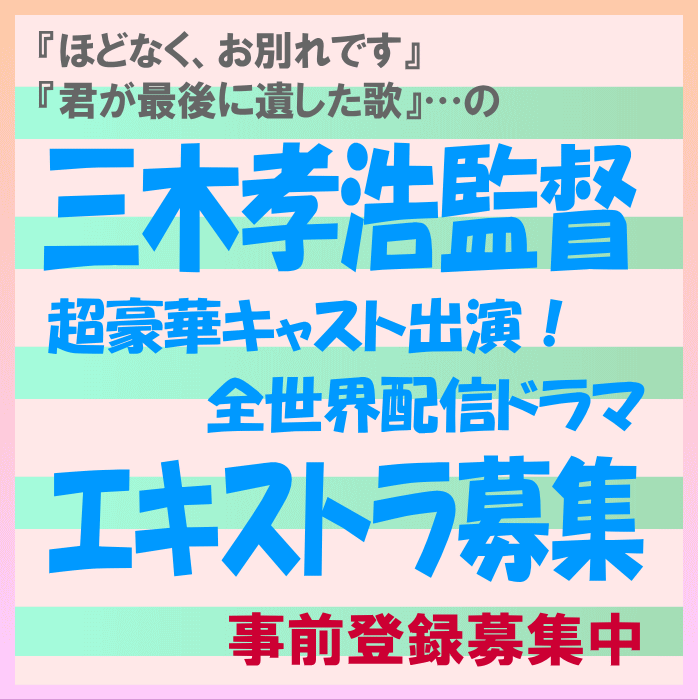 タチロークプロ様からのご依頼により、三木孝浩監督の新作のエキストラ募集情報をお知らせします。