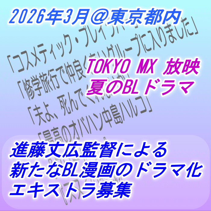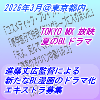 TOKYO MX 夏のBL連続ドラマのボランティアエキストラを募集します。