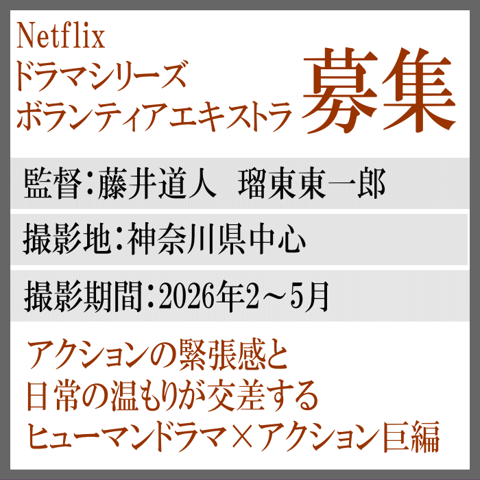 ご依頼により、新作ドラマのエキストラ募集情報をお知らせします。
