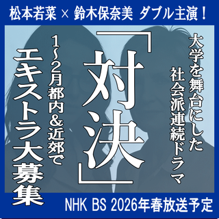 映像制作会社からのご依頼により、新作ドラマのエキストラ募集情報をお知らせします。