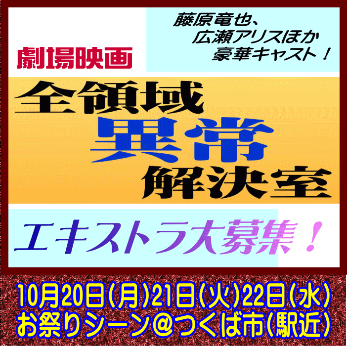 昨秋にドラマ版のエキストラ募集をお手伝いした「全領域異常解決室」の映画化版です。